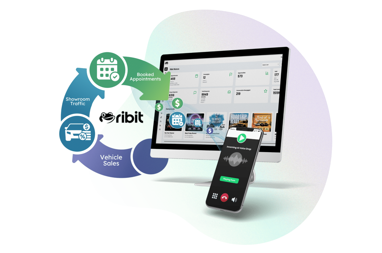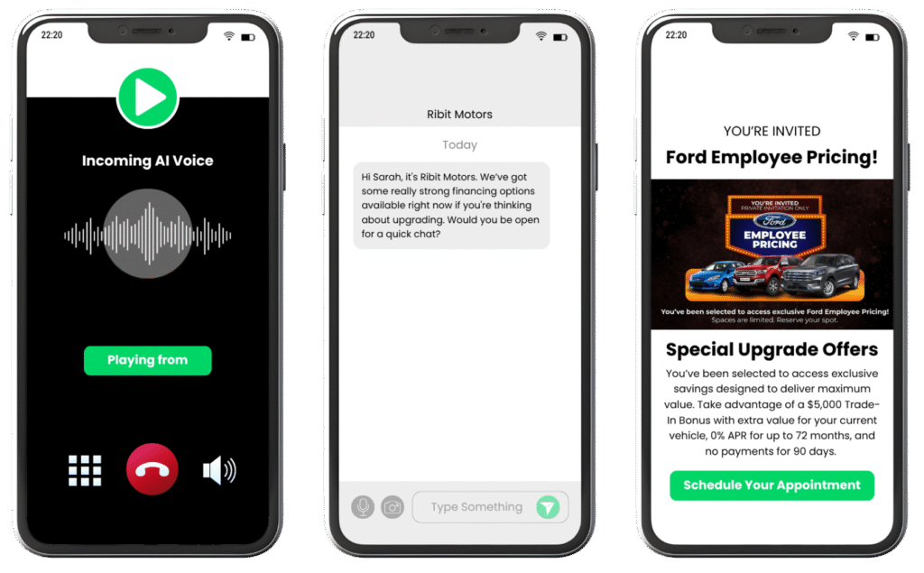 Ribit runs inbound leads, outbound campaigns, and follow-up across every rooftop — so your group stays consistent, coordinated, and growing without adding management overhead.
